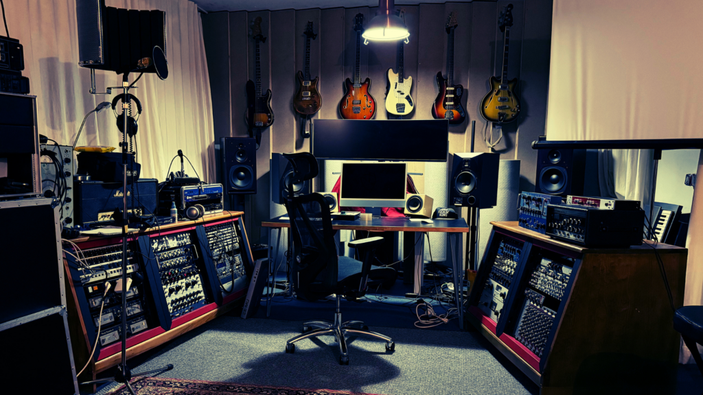- Professional studio monitors and acoustic treatment